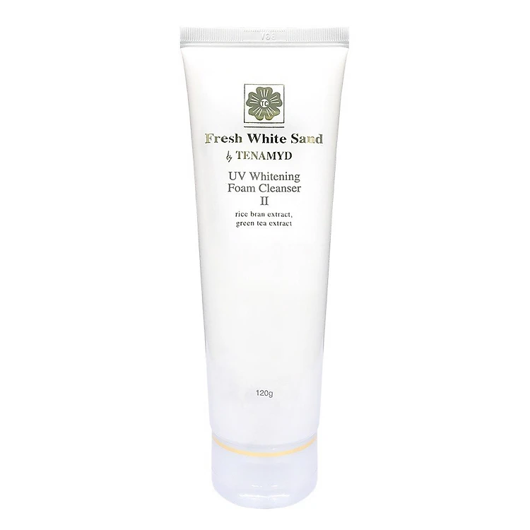 - Sữa rửa mặt Tenamyd Fresh White Sand UV Whitening Foam Cleanser II 120g trắng da với thành phần tinh chất Trà xanh và cám gạo làm sạch bụi bẩn, bã nhờn, son phấn trang điểm trên da, giúp da sạch sẽ, sáng mịn và không khô da.
