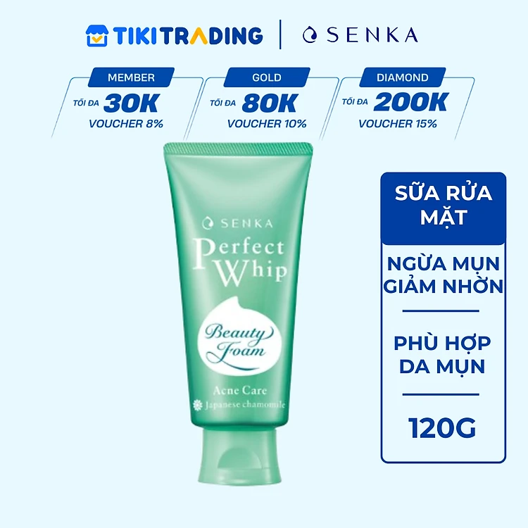 Sữa rửa mặt hỗ trợ trị mụn Senka Perfect Whip Acne Care 100g