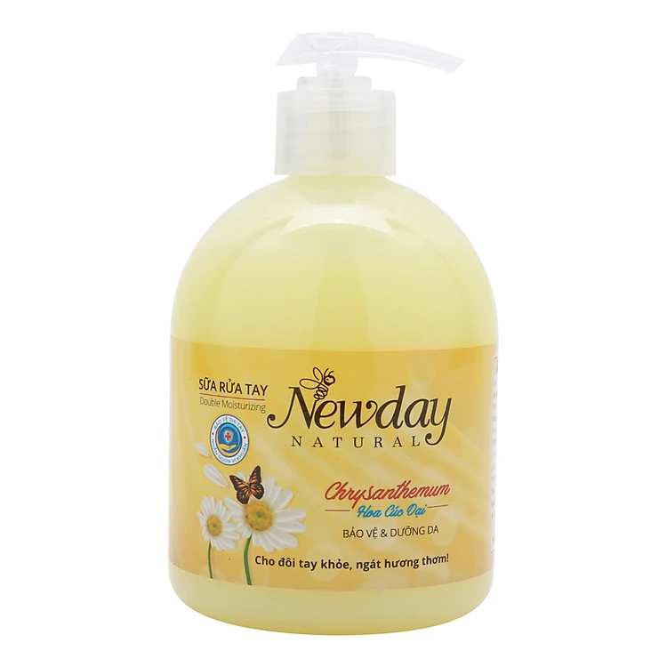 - Sữa Rửa Tay Newday Hoa Cúc Dại (500ml) mới với công thức độc đáo giúp làm sạch 99.99% vi khuẩn gây hại, bảo vệ da tay gia đình bạn.