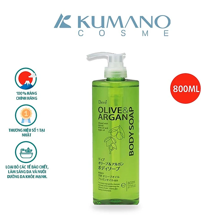 Sữa Tắm Deve Body Soap Chiết Xuất Dầu Olive & Argan Dưỡng Sáng, Làm Mềm Da (800ml)