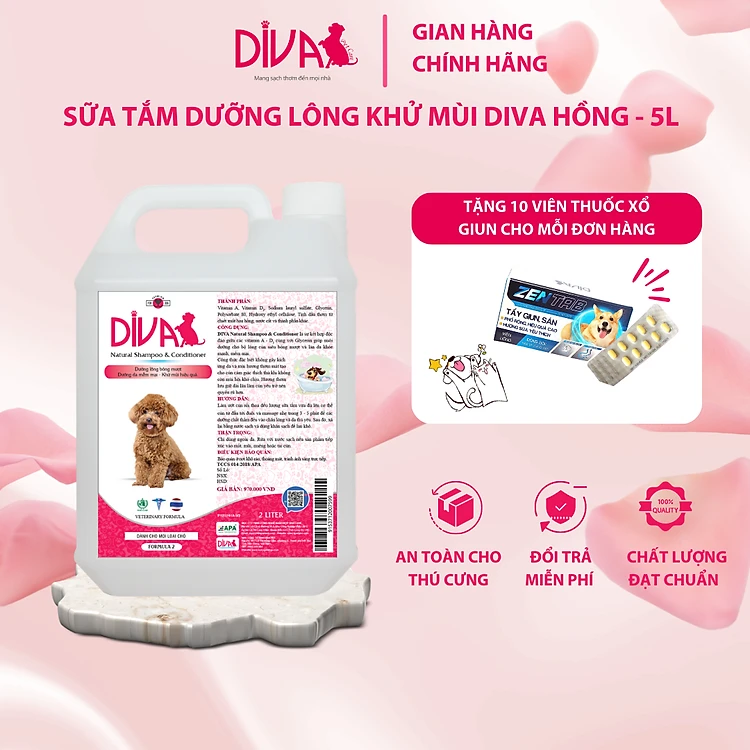 SỮA TẮM CHÓ DƯỠNG LÔNG KHỬ MÙI DIVA HỒNG 5L (DIVA FORMULA 2)
