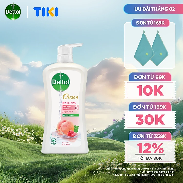 SỮA TẮM DETTOL ONZEN DƯỠNG DA ĐÀO & PHÚC BỒN TỬ 950G/CHAI