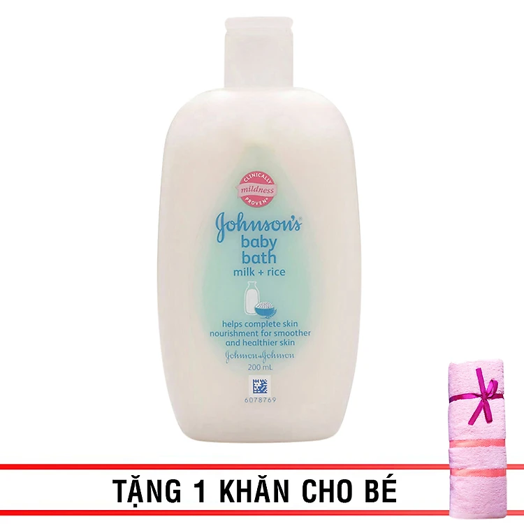 Sữa Tắm Dưỡng Ẩm Johnson’s Baby Chứa Sữa Và Tinh Chất Gạo (200ml) + Tặng 1 Khăn Cho Bé