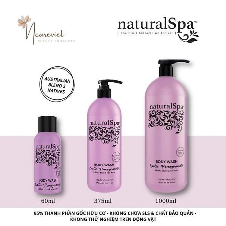 Sữa tắm hữu cơ trẻ hóa làn da, tăng cường năng lượng - naturalSpa Exotic Pomegranate Body Wash