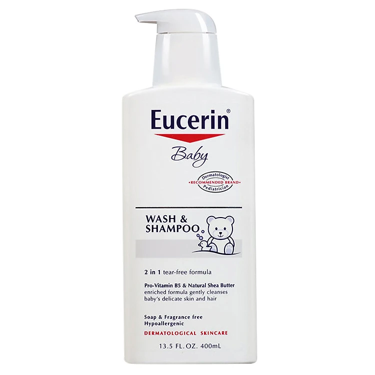 - Sữa Tắm Gội Cho Bé Eucerin Baby Wash & Shampoo (400ml) được nhiều bậc cha mẹ tin dùng cho bé vì có hương thơm dịu nhẹ nhưng không chứa hương liệu, không xà phòng, không chất nhuộm màu nên da nhạy cảm của bé có thể thích ứng tốt và đặc biệt là rất an toàn cho đôi mắt của bé.