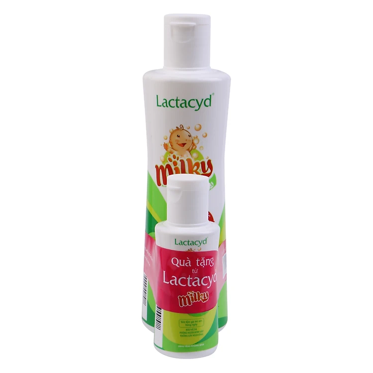 - Sữa tắm gội em bé Lactacyd Milky được sản xuất dành riêng cho bé yêu với công thức không làm cay mắt, có độ an toàn cao, không gây khô da, thích hợp cho việc sử dụng hàng ngày.