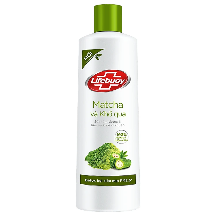 • Sữa Tắm Lifebuoy Detox Matcha Và Khổ Qua (250g) Hằng ngày làn da của chúng ta phải tiếp xúc với vô số bụi bẩn ô nhiễm và vi khuẩn, đặc biệt là bụi siêu mịn PM2.5 với kích thước chỉ bằng 1/100 lỗ chân lông.