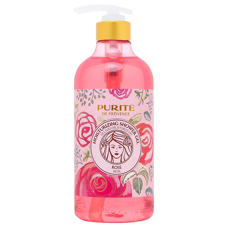 Purité De Prôvence Hoa Hồng là sữa tắm chiết xuất hoa hồng và dâu tằm cho da mịn màng, thư giãn.