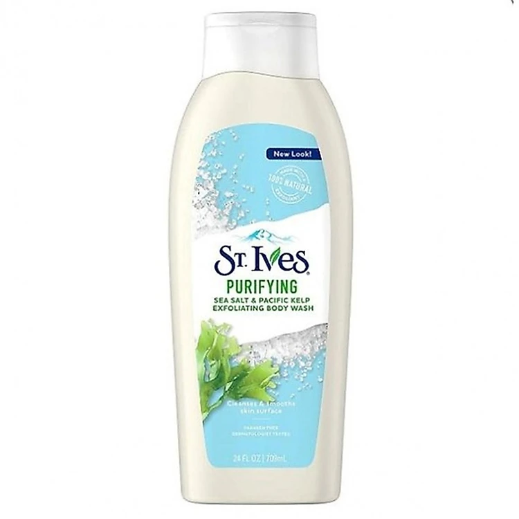 - Sữa Tắm St.Ives Muối biển và Tảo biển với muối biển và chiết xuất tảo biển tự nhiên giàu khoáng chất giúp nhẹ nhàng tẩy tế bào chết cho da, loại bỏ vùng da khô, bong tróc, lớp da sừng và tối màu ở khuỷu tay, đầu gối…, làm sáng vùng da xỉn màu.