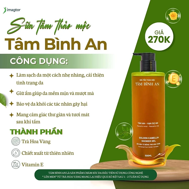 Sữa tắm Tâm Bình An sản phẩm chăm sóc da chiết xuất từ nguyên liệu thiên nhiên 500ml