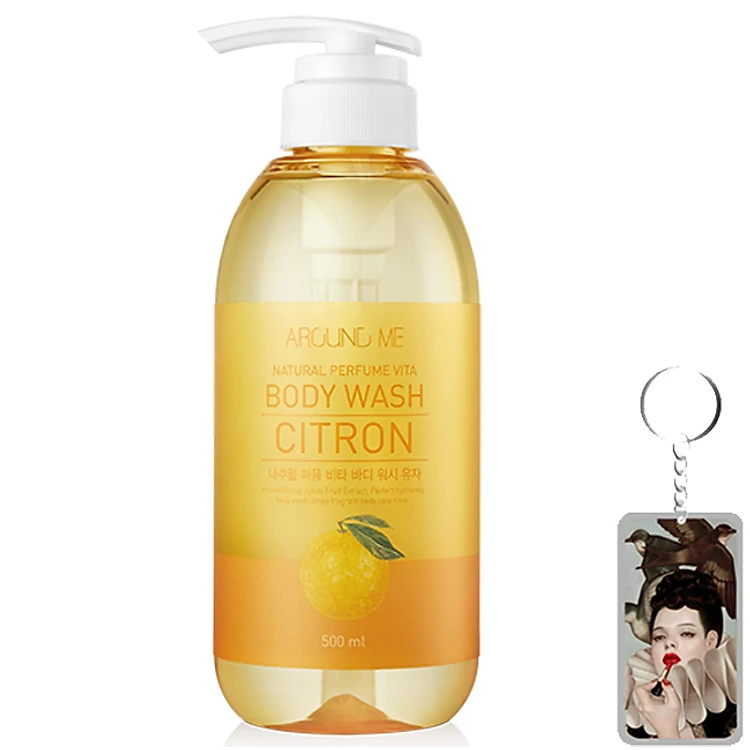 Sữa tắm tinh chất cam dưỡng ẩm Welcos Around Me Body Wash Citron Hàn Quốc 500ml tặng móc khóa