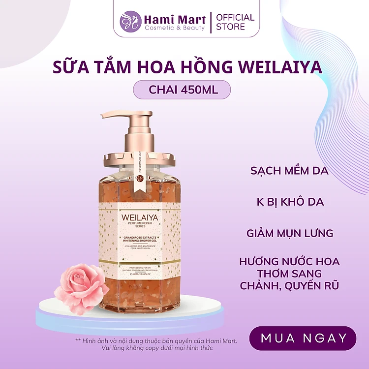 Sữa tắm trắng da chiết xuất cánh hoa hồng Damask Weilaiya Grand Rose Extracts Whitening Shower Gel chai 450ml