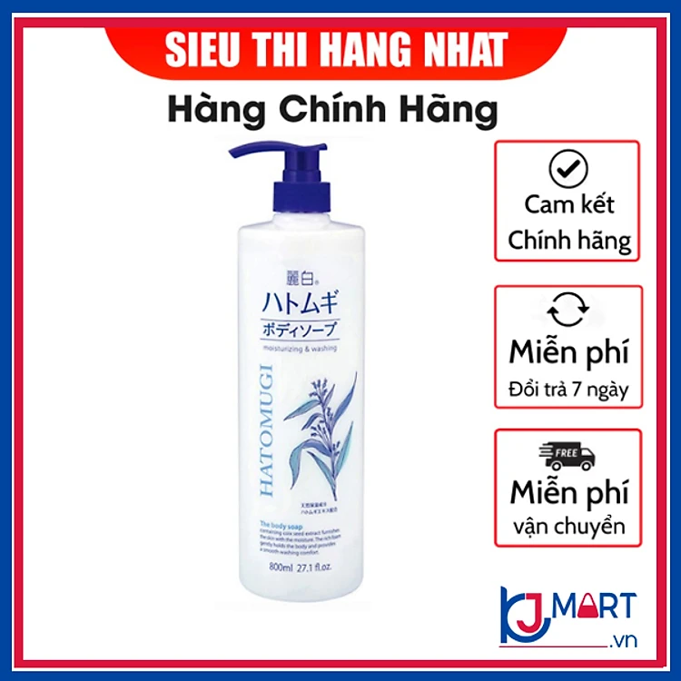 Sữa Tắm Trắng Da Giữ Ẩm Hatomugi Nhật Bản 800ml