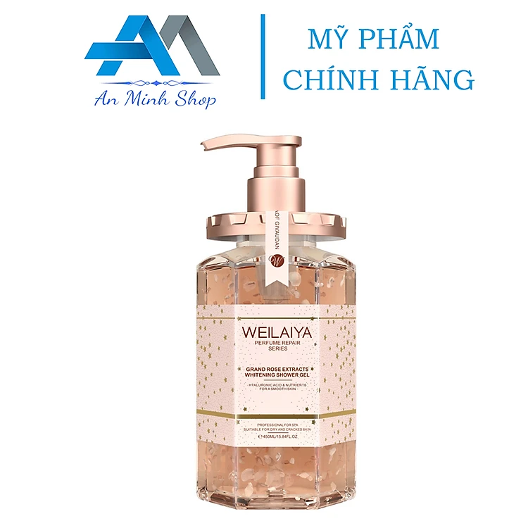 Sữa tắm Weilaiya chính hãng cánh hoa hồng Damask 450ml hương nước hoa quyến rũ trắng hồng tự nhiên