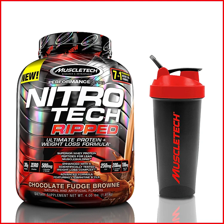 Sữa tăng cơ, giảm mỡ Muscletech Nitro Tech Ripped - Hộp 4lbs (1.8g) – Hỗ trợ phục hồi, phát triển cơ bắp, giảm mỡ thừa cho người tập thể hình và thể thao - Hàng chính hãng Muscletech USA - Mùi Chocolate - Kèm Quà Tặng