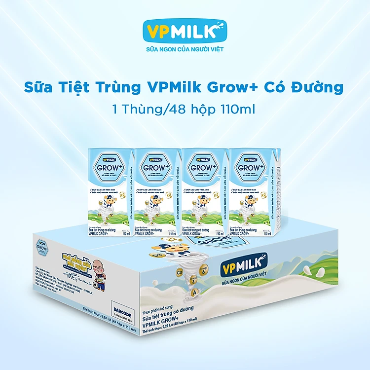 Sữa Tiệt Trùng Có Đường VPMilk Grow+ Hộp 110ml (Thùng 48 Hộp)