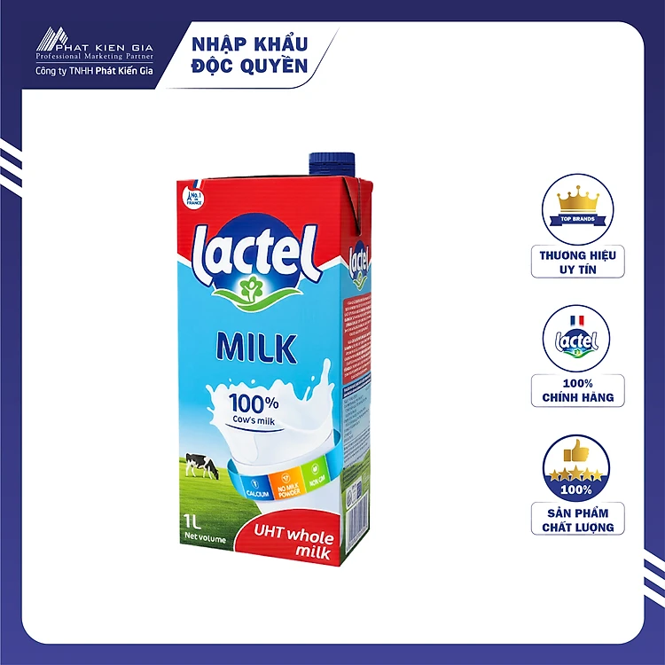 Sữa Tiệt Trùng Nguyên Chất Lactel 1L - Thương Hiệu Pháp, SX Slovenia | Lactel UHT Whole Milk 1L