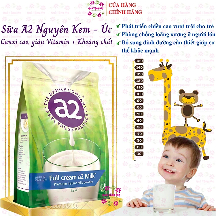 Sữa tăng chiều cao A2 nguyên kem full cream high in calcium phát triển xương, răng trẻ, chống loãng xương người lớn, tăng sức khỏe-QuaTangMe Extaste