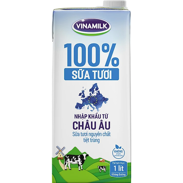 Sữa Tươi Nguyên Chất Tiệt Trùng Không Đường Vinamilk 100% Sữa Tươi Nhập Khẩu Từ Châu Âu (Hộp 1 Lít)