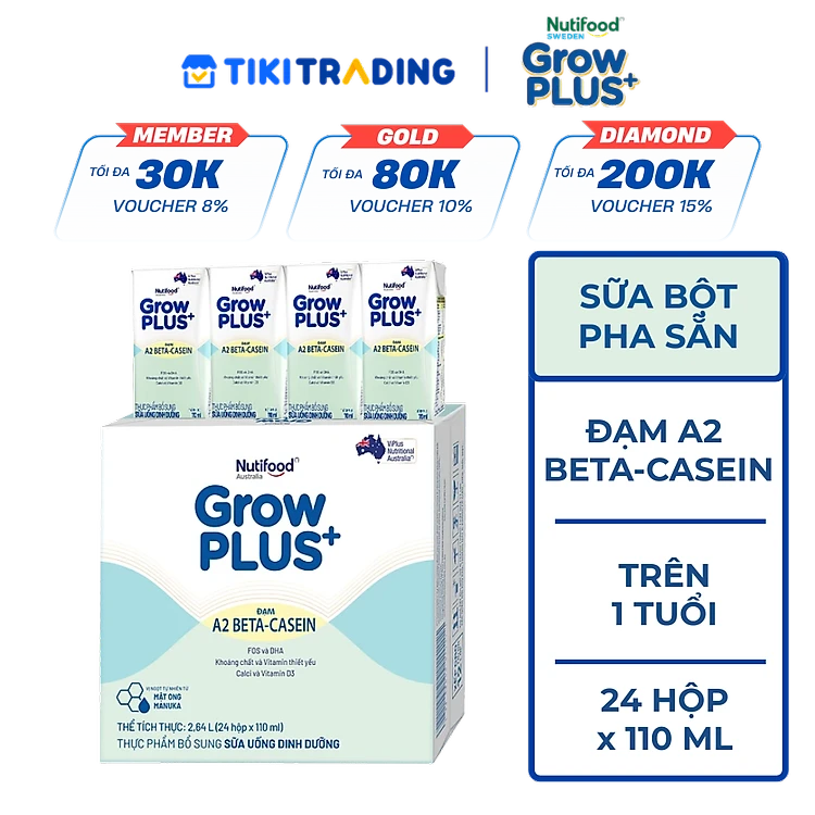 Thùng Sữa uống dinh dưỡng GrowPLUS+ A2 Beta-casein (24 Hộp x 110ml)