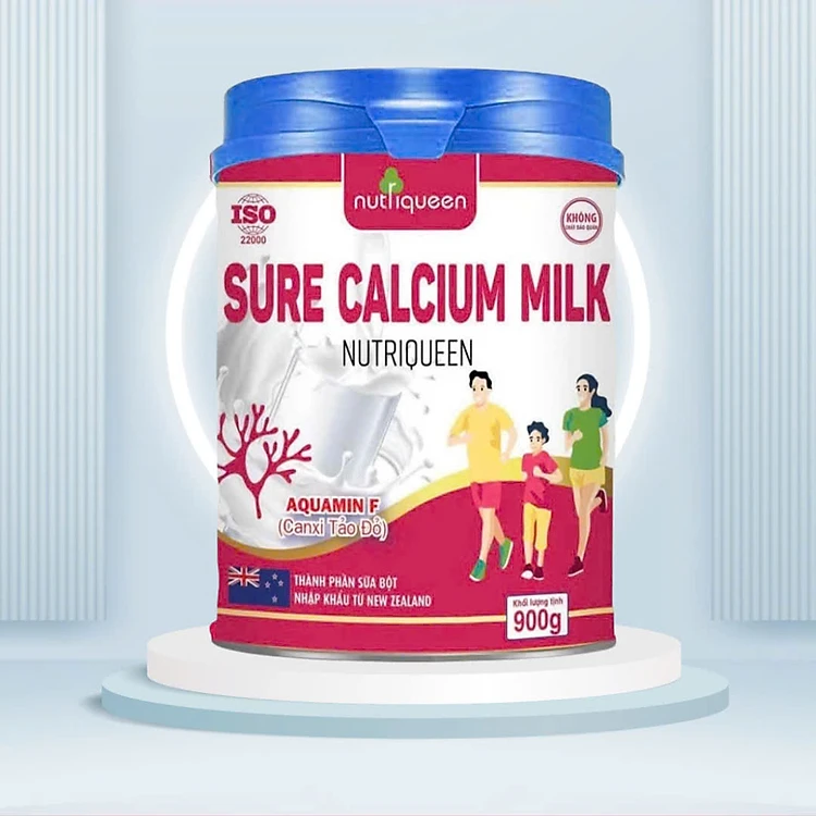 Sữa xương khớp Sure calcium milk tảo đỏ Nutriqueen 900 gam, bổ sung canxi, D3, K2 cho cơ thể