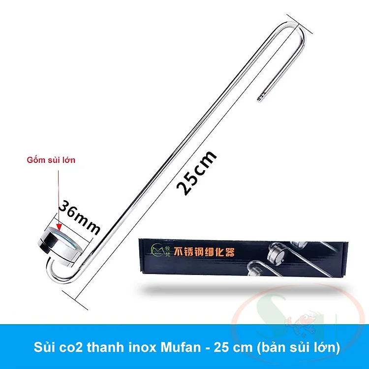 Sủi co2 thanh inox Mufan 20 25 30 35 40 cm siêu mịn treo thành hồ thủy sinh