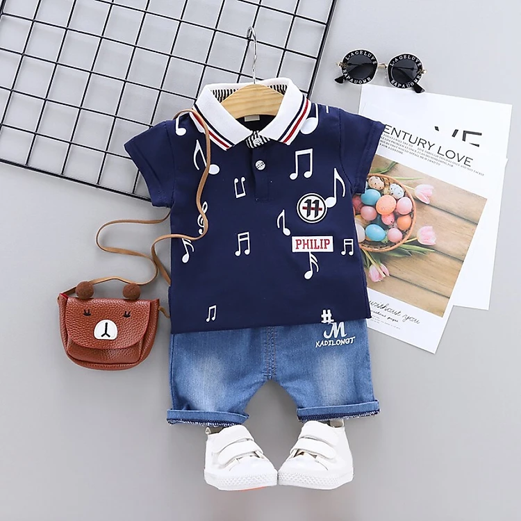Summer New Style Children Clothing Sets Baby Boys Lapel T shirts+Shorts Pants Cartoon Suit Kids clothes
