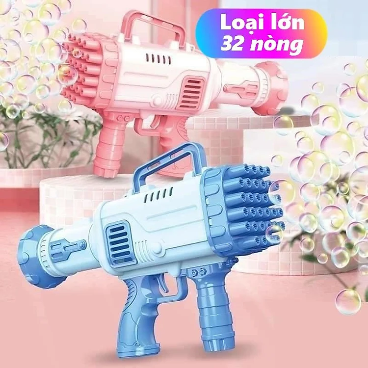 - Súng bắn bong bóng 32 nòng chạy bằng pin: súng siêu cấp rất thú vị, với thiết kế chân thực, màu sắc tươi tắn, chiếc súng thổi bong bóng chỉ cần chạm vào chất dung dịch xà phòng và bóp cò, cánh quạt bên trong sẽ hoạt động và thổi ra rất rất nhiều bong bóng.