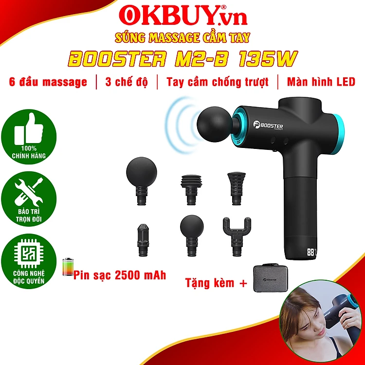 Súng massage cầm tay cao cấp công nghệ Ai Booster M2 - 6 đầu, 3 chế độ mát xa