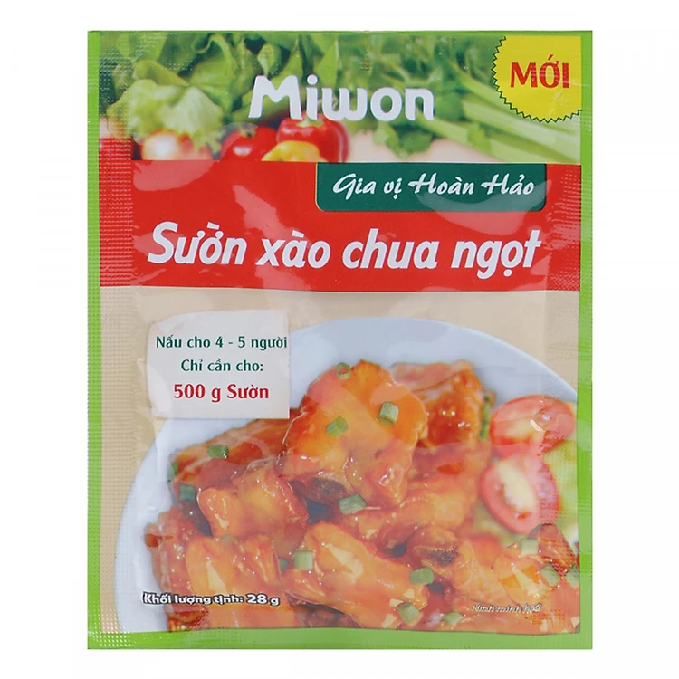 - Sườn Xào Chua Ngọt Miwon 28g là gia vị hoàn hảo, sườn xào chua ngọt là công thức phối trộn hài hòa, độc đáo của tất cả các nguyên liệu, gia vị truyền thông cần thiết giúp bạn nấu món sườn xào chua ngọt ngon nhất và nhanh nhất.