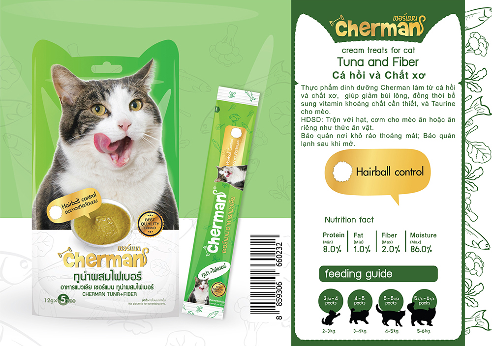 - Súp Dinh Dưỡng Cá Thu Và Rau Cherman (5 Gói x 12g) làm từ thịt cá thu và chất xơ thơm ngon, mang lại nguồn dinh dưỡng và khoáng chất dồi dào, bổ sung Taurine giúp giảm búi lông, nuôi dưỡng lông mềm mượt.