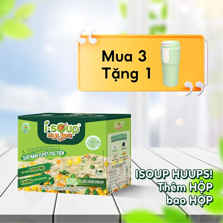 Súp Nấm Tuyết Tóc Tiên Ăn Liền ISOUP HUUPS Ngon,Dinh Dưỡng,Tiện Lợi (Hộp X 3 Viên) - Súp Ăn Liền Sấy Thăng Hoa