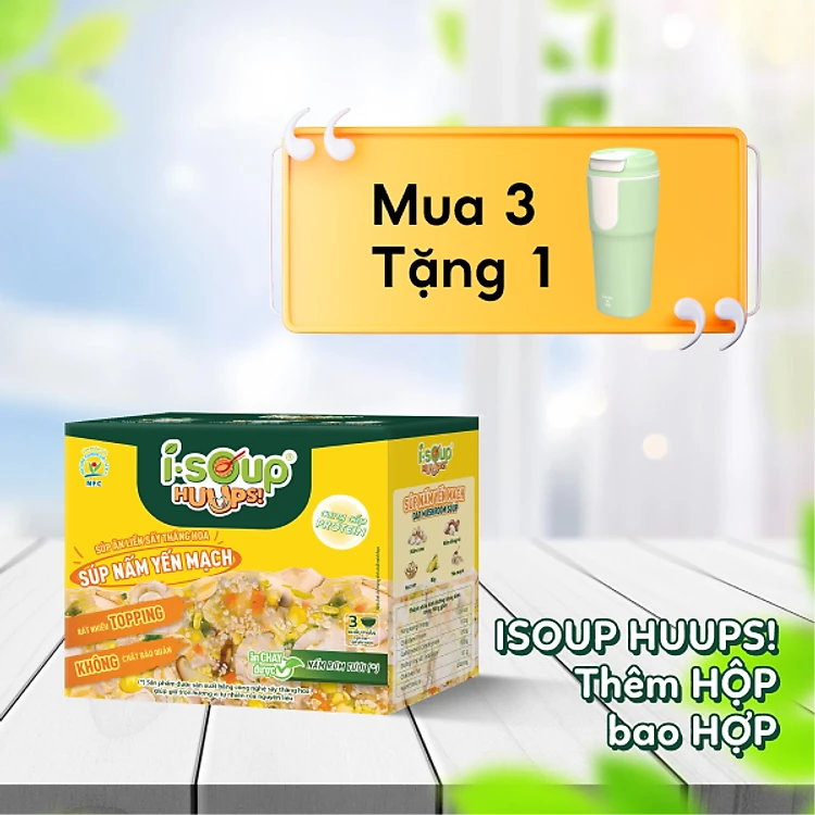 Súp Nấm Yến Mạch Ăn Liền ISOUP HUUPS Ngon,Dinh Dưỡng,Tiện Lợi (Hộp X 3 Viên) - Súp Ăn Liền Sấy Thăng Hoa