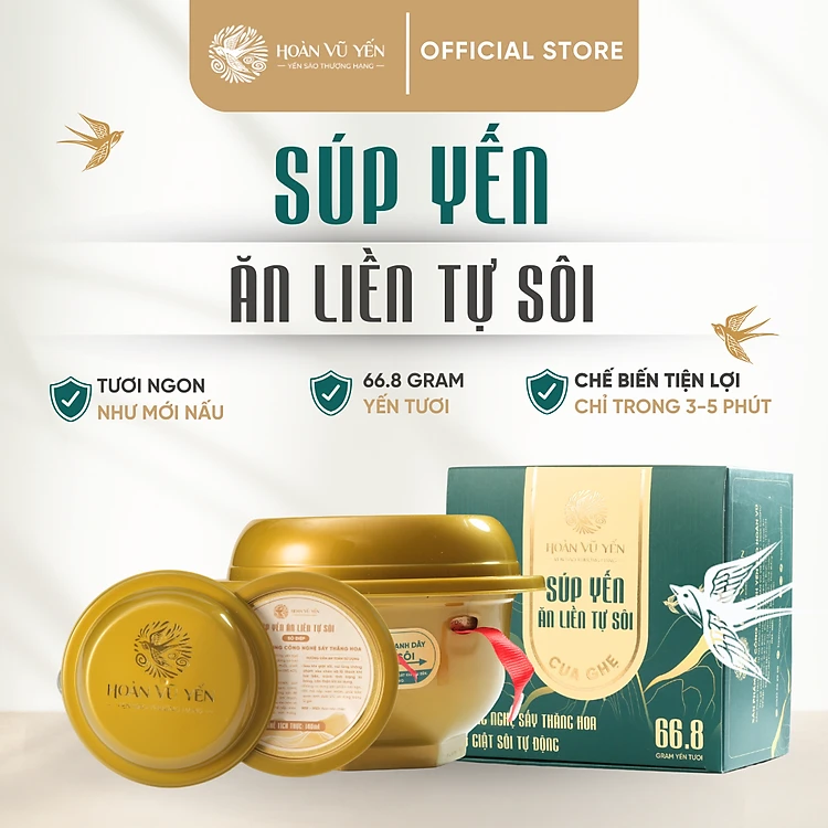 Súp Tổ Yến Ăn Liền Tự Sôi - 66.8g Yến Tươi - Công Nghệ Sấy Thăng Hoa - Dinh Dưỡng Tiện Lợi - Tăng Cường Sức Khỏe - Chống Lão Hóa - Tăng Cường Trí Nhớ - Chính Hãng Hoàn Vũ Yến - Cosmo Bird's Nest