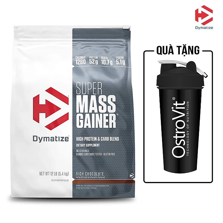 Mỗi khẩu phần Super Mass Gainer được phát triển bởi Dymatize cung cấp 1280 Calo và 52g Protein chất lượng cao, cho bạn một buổi tập đầy năng lượng và sung mãn. Với 10.7g BCAA giúp kích thích quá trình tổng hợp Protein trong cơ thể. Được biết đến trên toàn thế giới bởi chất lượng, hương vị và độ tinh khiết, Super Mass Gainer sản xuất từ các thành phần chất lượng cao theo tiêu chuẩn GMP nghiêm ngặt.