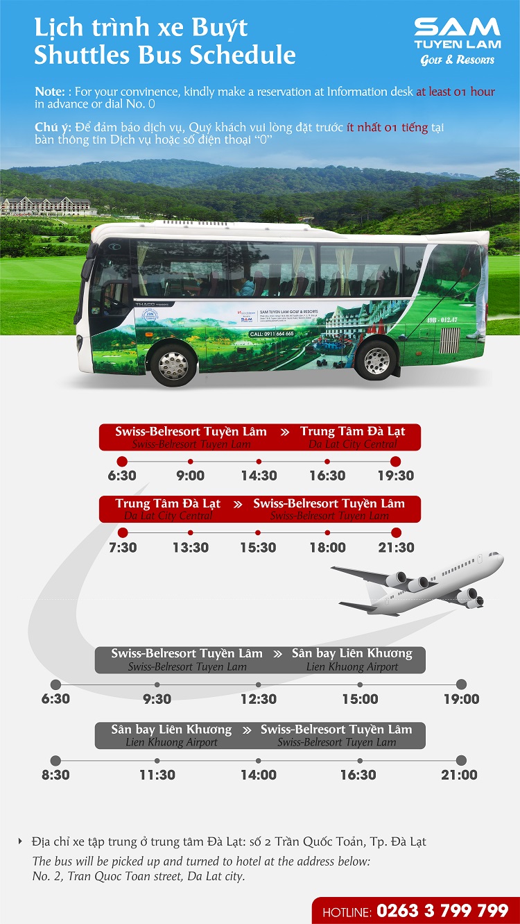 Lịch xe đưa đón miễn phí của resort (có thể thay đổi mà không báo trước)