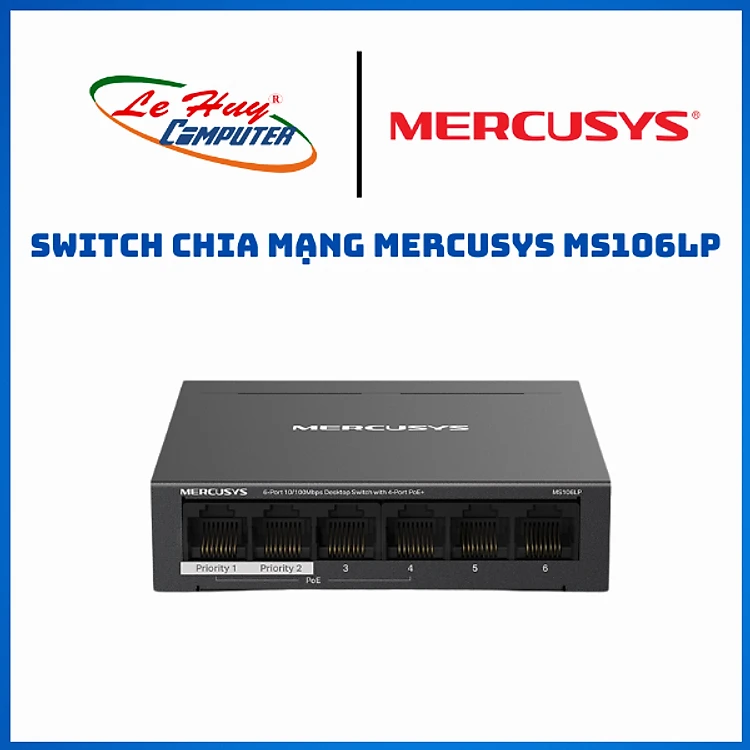 Switch Chia Mạng Mercusys MS106LP (6 cổng 10/100Mbps với 4 cổng PoE+ - Hàng Chính Hãng