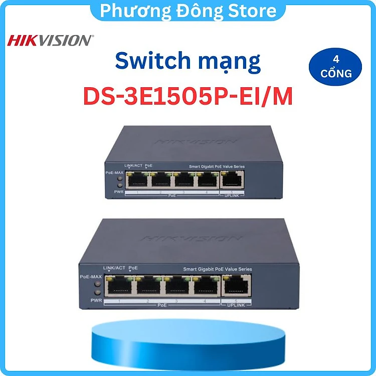 Switch mạng thông minh 4 cổng PoE Gigabit HIKVISION DS-3E1505P-EI/M - Hàng chính hãng
