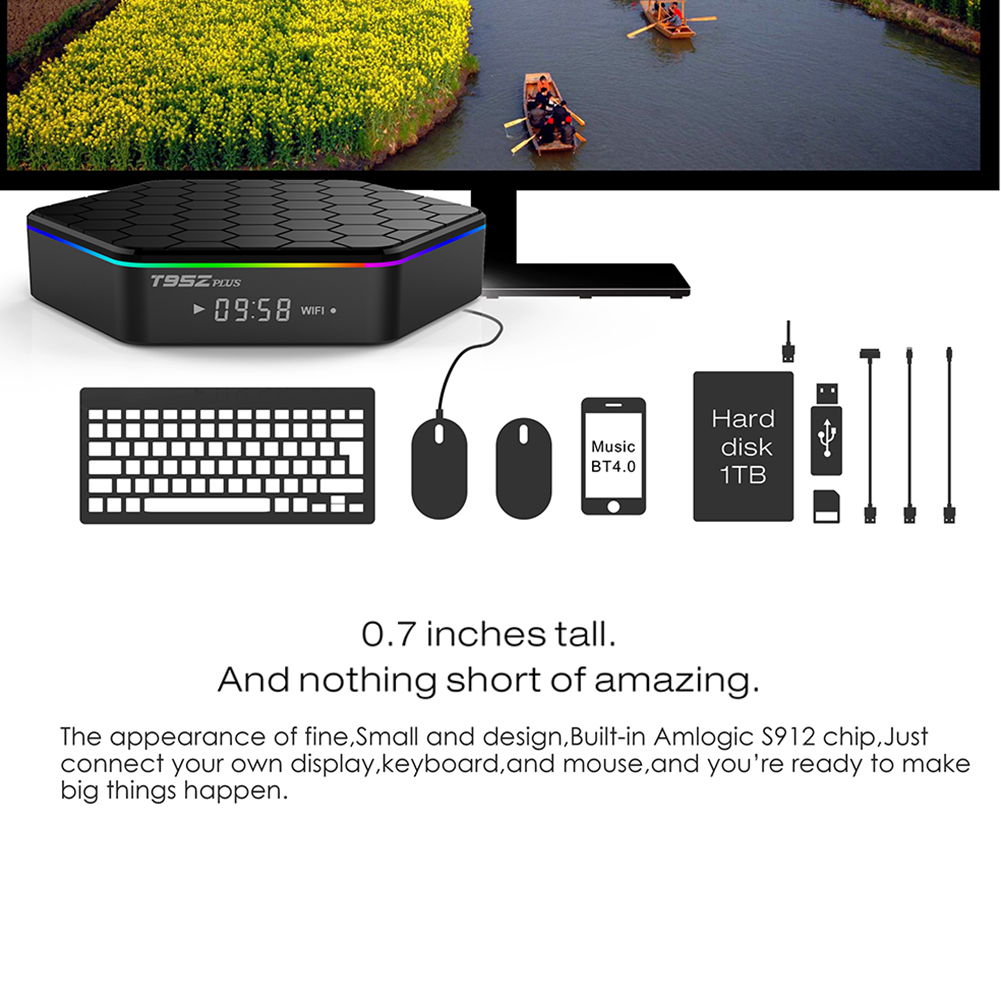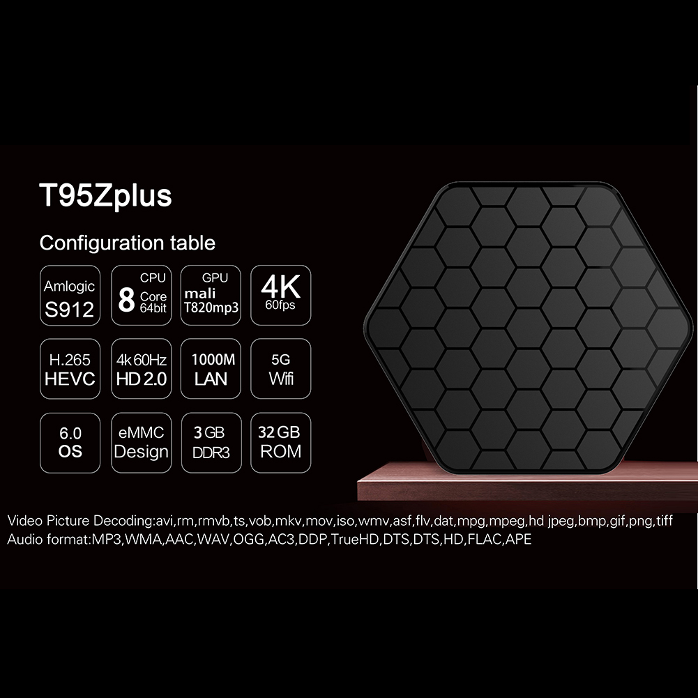 T95Z Plus Smart TV Box Android 6.0 Amlogic S912 Octa Core 3G+32G 2.4G+5G WIFI Bluetooth H.265 4K Set-top Box Media Palyer