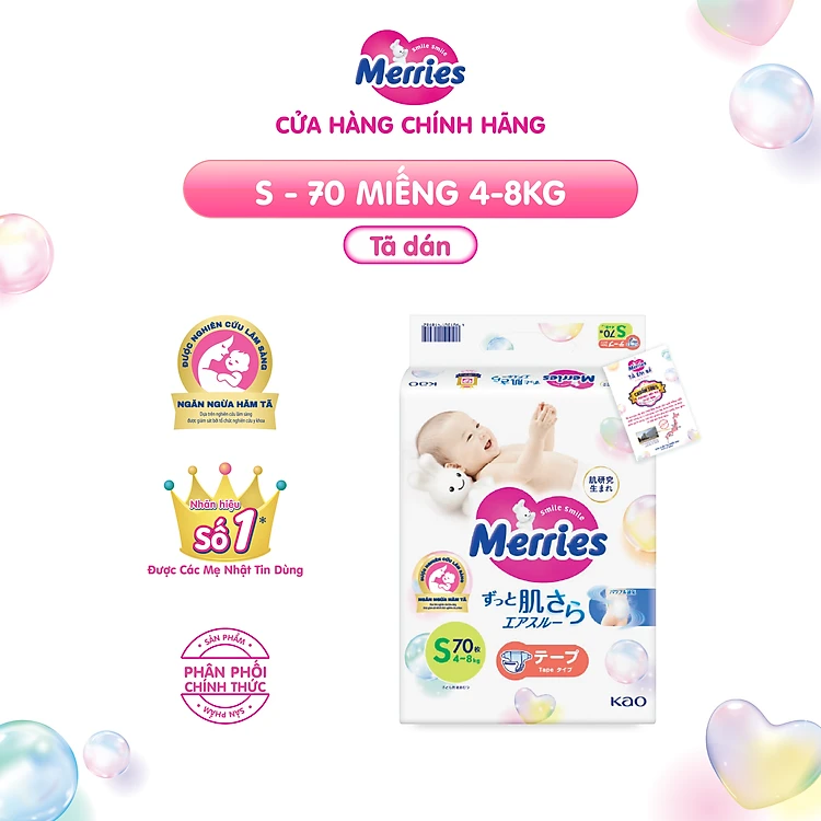 Tã/bỉm dán Merries size S - 70 miếng (dành cho bé 4 - 8kg)