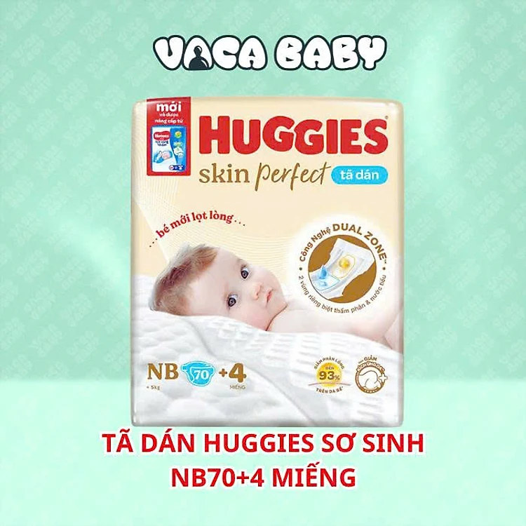 Tã/bỉm DÁN sơ sinh Huggies Skin Perfect đủ size NB70+4/S80+2/M76+3 miếng