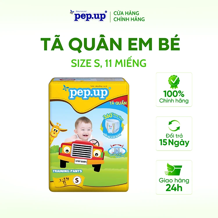 Tã/Bỉm Quần Em Bé Pep.up Extra Dry Gói Nhỏ Siêu Mềm Mại, Siêu Khô Thoáng, Kháng Khuẩn Size S11, M10, L9, XL8