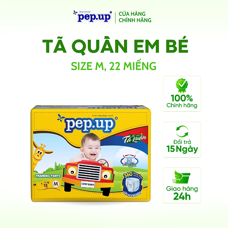 Tã/Bỉm Quần Em Bé Pep.up Extra Dry Gói Trung Siêu Mềm Mại, Siêu Khô Thoáng, Kháng Khuẩn Size M22, L20, XL18, XXL16