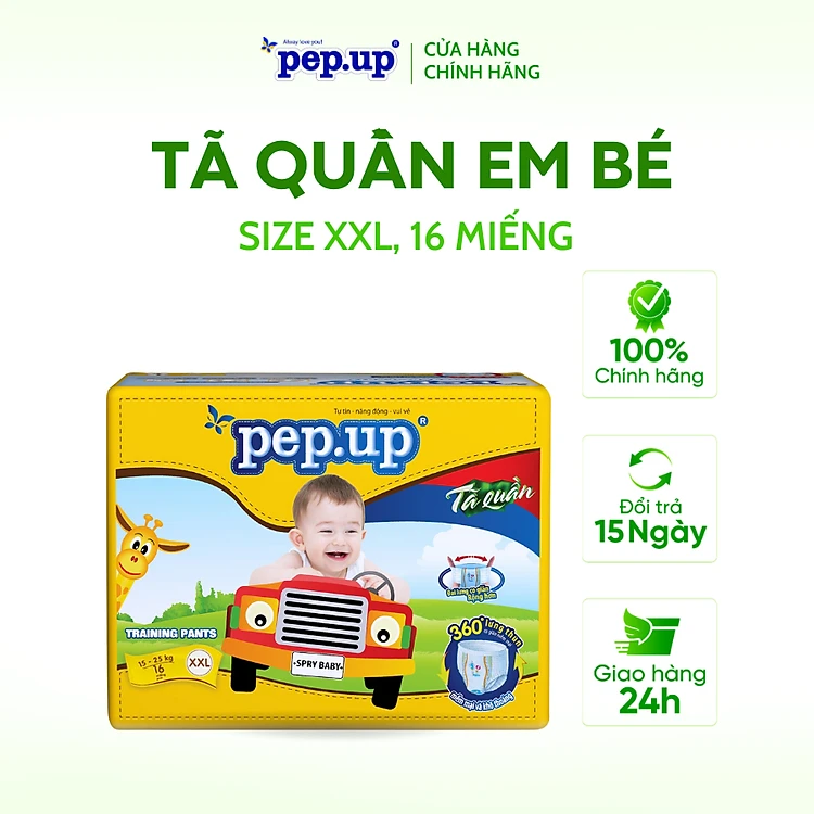 Tã/Bỉm Quần Em Bé Pep.up Extra Dry Gói Trung Siêu Mềm Mại, Siêu Khô Thoáng, Kháng Khuẩn Size M22, L20, XL18, XXL16