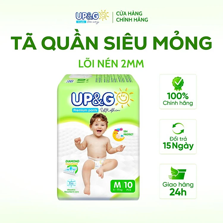 Tã/ Bỉm Quần Em Bé Siêu Mỏng Up&Go Lõi Nén 2mm Siêu Mềm Mại, Siêu Khô Thoáng, Siêu Thấm Hút Size S/M/L/XL