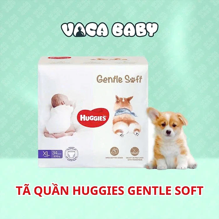 Tã bỉm QUẦN Huggies Gentle Soft - Corgi miếng êm mềm nâng niu làn da bé đủ size M54/L40/XL34/XXL22 miếng