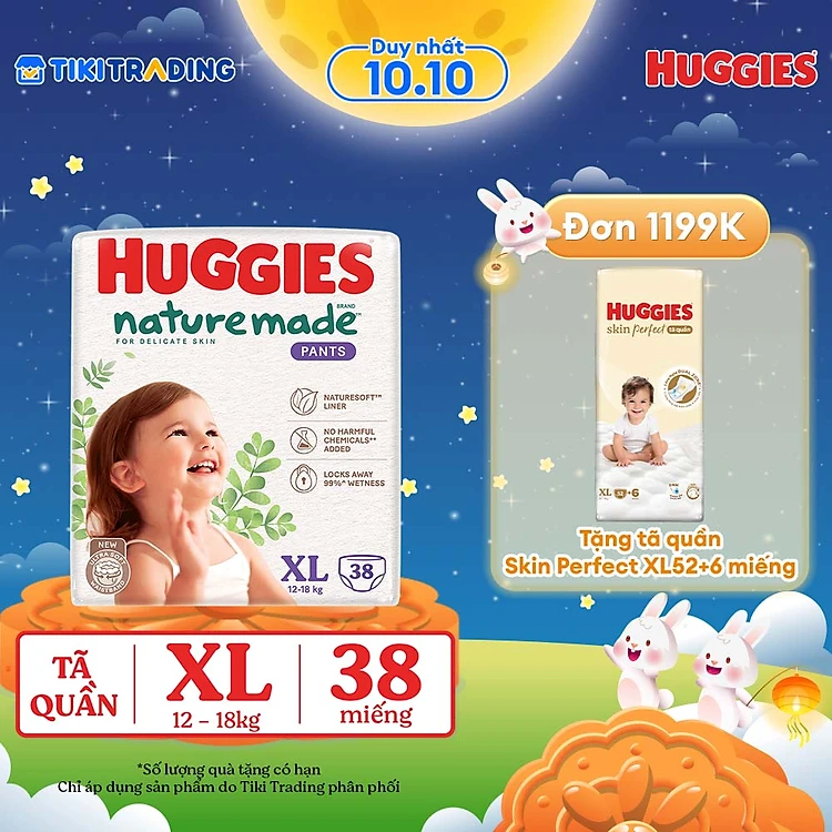Tã/bỉm quần Huggies Naturemade M58/L44/XL38/XXL26