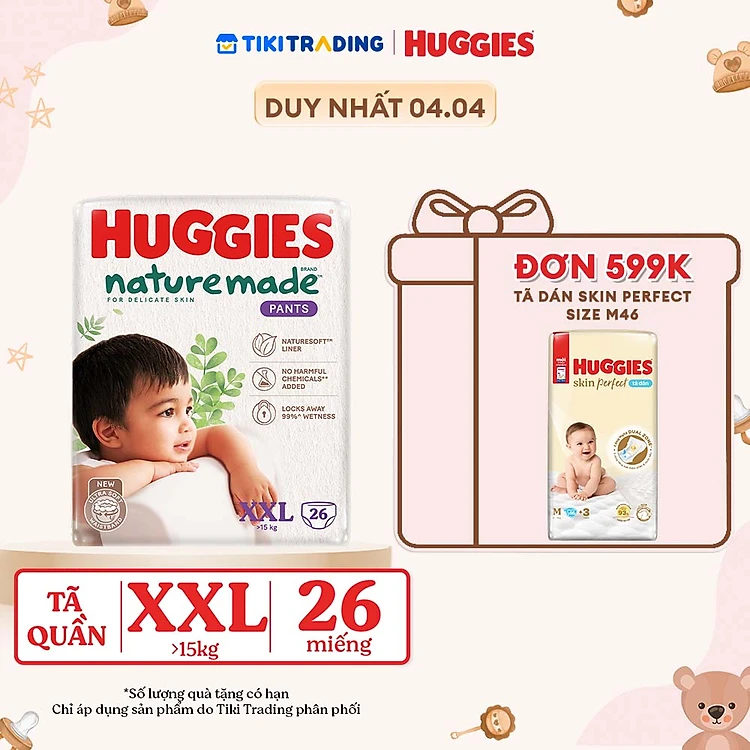 Tã/bỉm quần Huggies Naturemade M58/L44/XL38/XXL26