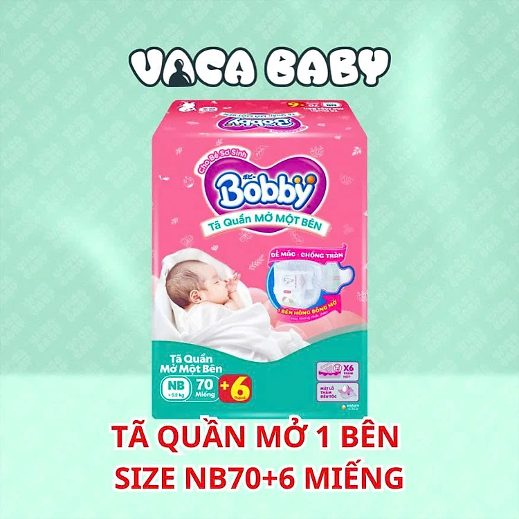 Tã bỉm QUẦN MỞ 1 BÊN BOBBY size NB70+6 miếng