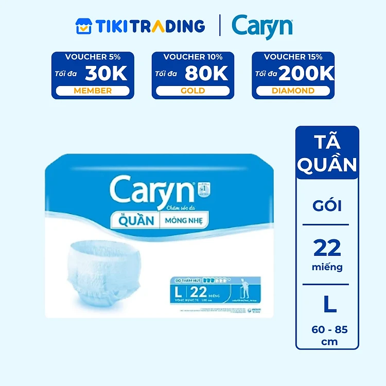 Tã/Bỉm Quần Người Lớn Caryn Mỏng Nhẹ Chống Tràn Dành Cho Người Già Có Thể Tự Đi Lại Size L 22 miếng)